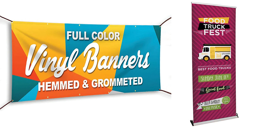 We produce banners in a wide range of sizes, from small table-top signs to oversized banners spanning building facades. Whether you need a 2’x4’ welcome sign or a 10’x20’ outdoor promotion, we’ve got you covered.